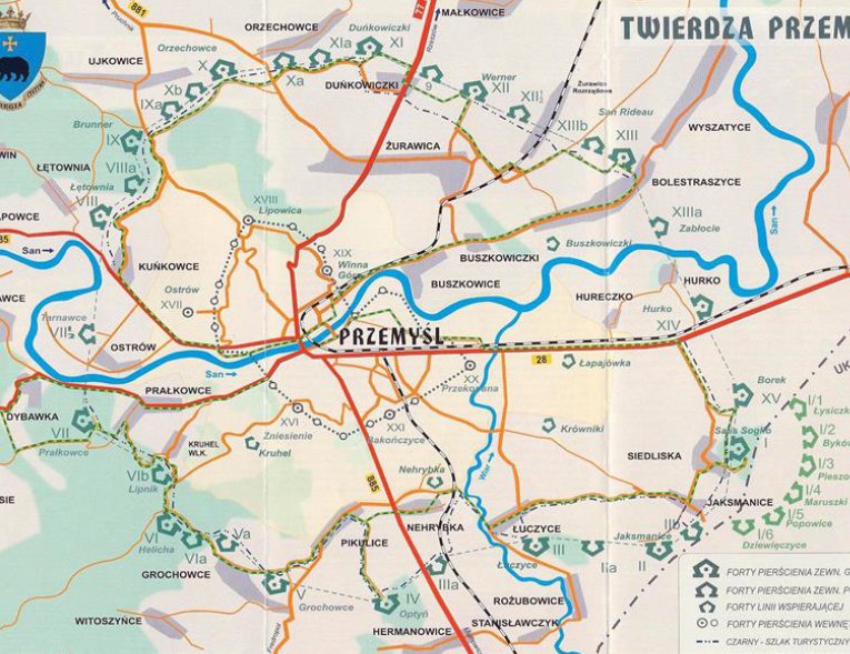 Nicht zu vergessen die kleine Ausgabe des Wiener Bahnhofs, den die Österreicher 1860 bauen liessen. Przemysl lag an einer extrem günstigen Lage zwischen Krakau und Lemberg-Kiew, deshalb bauten die Österreicher auch einen Festungskomplex von 45 km Länge mit 42 Forts, die alle miteinander verbunden sind. Diese Festung ist nach Antwerpen und Verdun die drittgrösste in Europa und eine Glanzleistung der Fortifikationskunst aus der Wende des 19. Jh. zum 20. Jh.