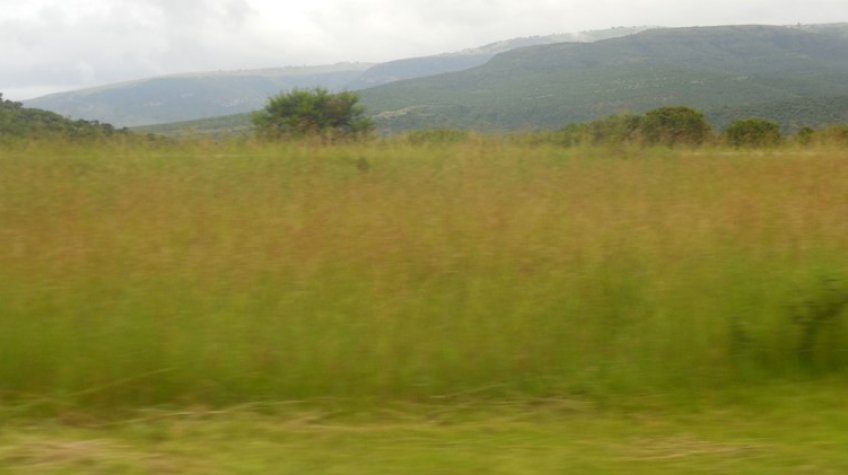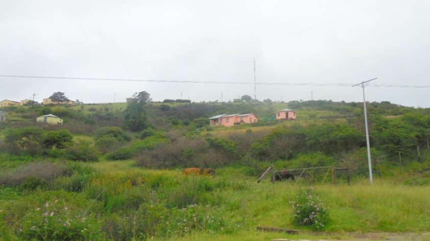 Die Fahrt von Gonubie bis zur Nachbarschaft des Geburtsortes von Nelson Mandela (Qunu) dauert zwei Stunden und entpuppt sich als höchst spannend. Wir fahren einmal mehr Hügel rauf und Hügel runter, haben dadurch wieder freie Sicht auf die unendlich grünen Weiten. Die erste Stunde nach East London fragen wir uns, weshalb wohl dieses fruchtbare Land in keiner Weise genutzt wird. Je mehr wir uns jedoch dem Geburtsort von Nelson Mandela nähern, desto besser werden die Beispiele intakter Dörfer südafrikanischer Einheimischer.