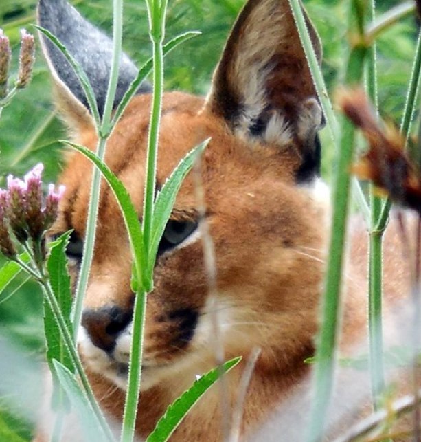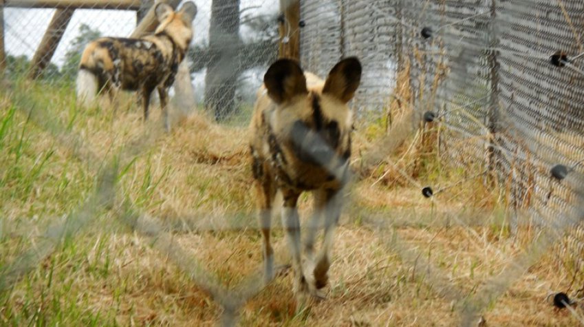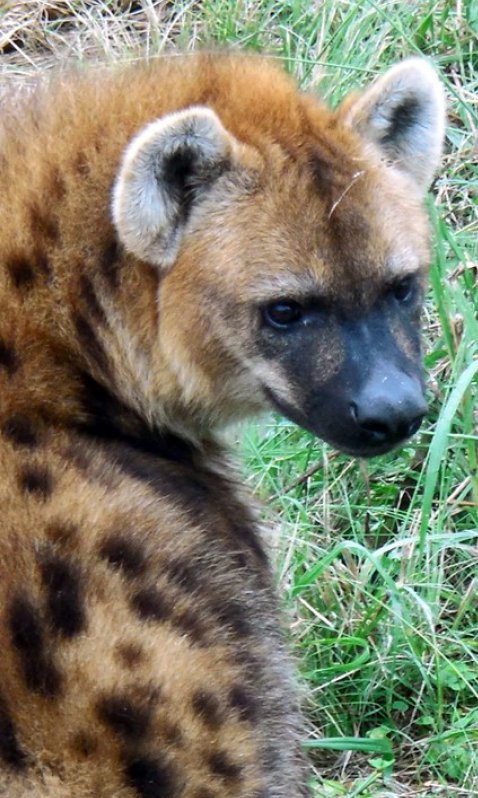 Die Fleckenhyäne, die gar nicht so gross ist, gilt als sehr gefährlich. Kann einen Menschen mit einem einzigen Biss töten. Diese niedliche „Miezekatze“ wiederum tötet nicht wie die Löwen aus Hunger, sondern aus Spass am Töten. Ohne weiteres kann sie an einem Tag 34 Schafe töten, ohne sie verspeisen zu wollen. Deshalb wird sie von den Einheimischen, gejagt, geschossen, vergiftet. Einige leben zusammen im Gehege. Eine erblindende wilde Katze jedoch muss einzeln gehalten werden. Sie ist geschwächt und würde deshalb von ihren Artgenossen angegriffen werden.